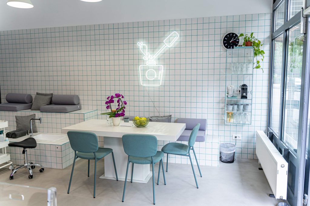Plastificirani materijali i beton u salonu postavljeni su s razlogom. Omogućavaju brzo čišćenje radnog prostora. Na taj način prostor se praktično posprema, a ostavlja više vremena za rad s klijentima. Alat se prije i nakon pružene usluge uvijek dezinficira. Naše tehničarke za vrijeme rada nose zaštitne maske i rukavice te kutu, koja simbolizira oprave zaposlenika u laboratoriju i besprijekornu čistoću. Klijentima nakon pružene usluge kao dodatni znak pažnje poklanjamo rašpicu, što je također pokazatelj brige oko čistoće i vrhunskih higijenskih uvjeta od kojih u salonu nikada nećemo odstupati!